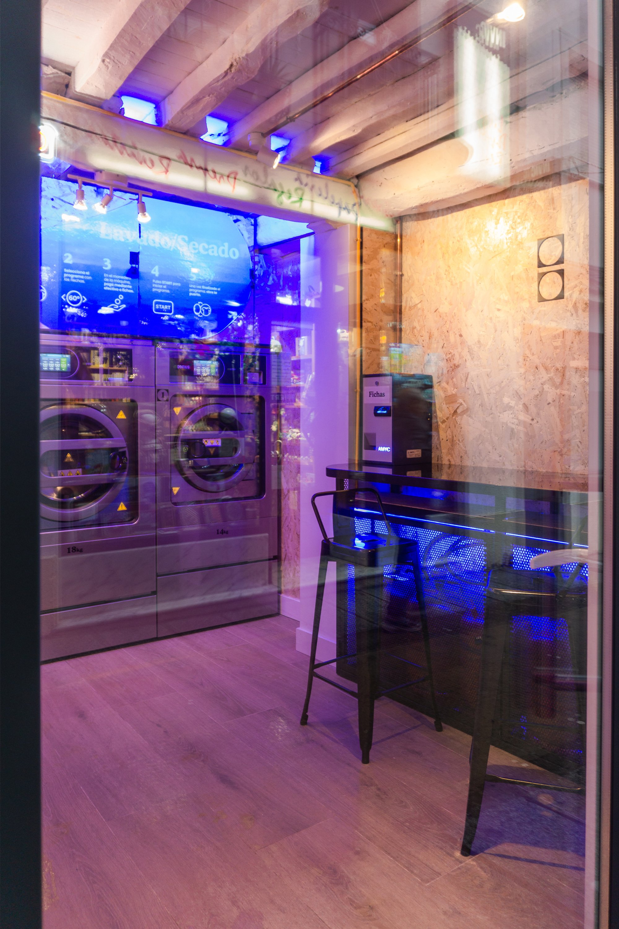 Tanto en la lavadoras como en las secadoras únicamente se puede pagar con monedas o fichas, pero contamos con una máquina de cambio que dispensa “Bubblos” (fichas).